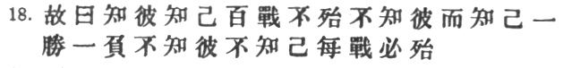 18. Hence the saying: If you know the enemy and know yourself, you need not fear the result of a hundred