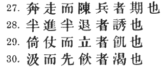 27. When there is much running about 1 and the soldiers fall into rank, 2 it means that the critical moment has come. 3