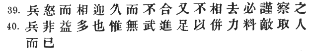 39. If the enemy's troops march up angrily and remain facing ours for a long time without either joining battle or taking themselves off again, the situation is one that demands great vigilance and circumspection. 1