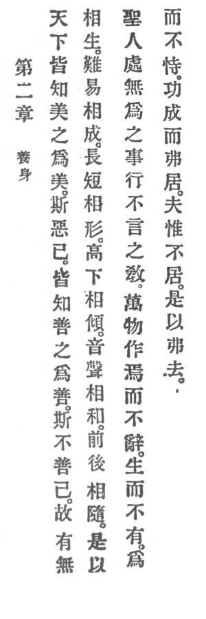 The holy man abides by non-assertion in his affairs and conveys by silence his instruction. When the ten thousand things arise, verily, he refuses them not. p. 75 He quickens but owns not. He acts but claims not. Merit he accomplishes, but he does not dwell on it.
