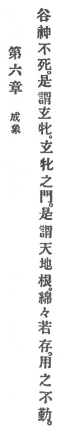 1. "The valley spirit not expires, Mysterious woman tis called by the sires. The mysterious woman's door, to boot, Is called of heaven and earth the root. Forever and aye it seems to endure And its use is without effort sure."