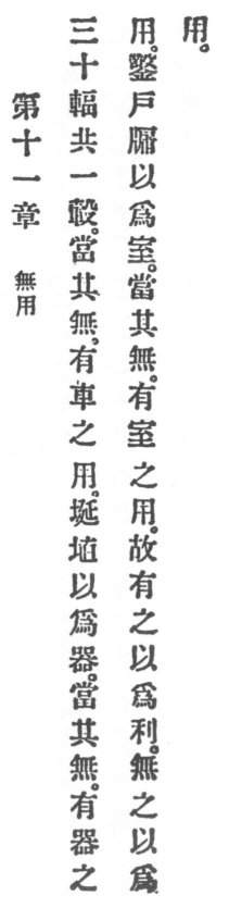 1. Thirty spokes unite in one nave and on that which is non-existent [on the hole in the nave] depends the wheel's utility. Clay is moulded into a vessel and on that which is non-existent [on its hollowness] depends the vessel's utility. By cutting out doors and windows we build a house and on that which is p. 80 non-existent [on the empty space within] depends the house's utility.