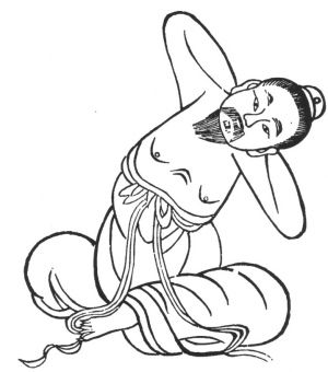17.—For the Solar Term of the Ninth Month, called "Cold Dew."—Sitting upright raise both arms, jerk up the body as if supporting something, right and left 5 × 7 times,