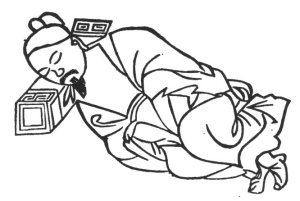 There are illustrations of Ch’ên sleeping on the left and right sides in two of the works consulted. It is accompanied by two poetical stanzas, the last line of the left sleeping hung running thus:—