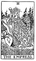 This Empress is indeed "a daughter of Heaven and Earth" (W.), for she represents the sphere of Mercury, Messenger of the Gods, and so this card always bears the meaning of messages and writing, and of news to be heard, instructions to be received.