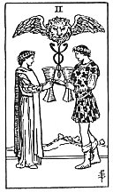 TRADITION: Love, passion, inclination, sympathy, attraction, concord, friendship, the inter-relation of the sexes; Reversed: Lust, cupidity, jealousy, wish, desire, but the card may also give, says W., "that desire which is not in nature, but by which nature is sanctified."