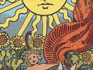The veil or mask of life is perpetuated in change, transformation and passage from lower to higher, and this is more fitly represented in the rectified Tarot by one of the apocalyptic visions than by the crude notion of the reaping skeleton. Behind it lies the whole world of ascent in the spirit. The mysterious horseman moves slowly, bearing a black banner emblazoned with the Mystic Rose, which signifies life. Between two pillars on the verge of the horizon there shines the sun of immortality. The horseman carries no visible weapon, but king and child and maiden fall before him, while a prelate with clasped hands awaits his end.