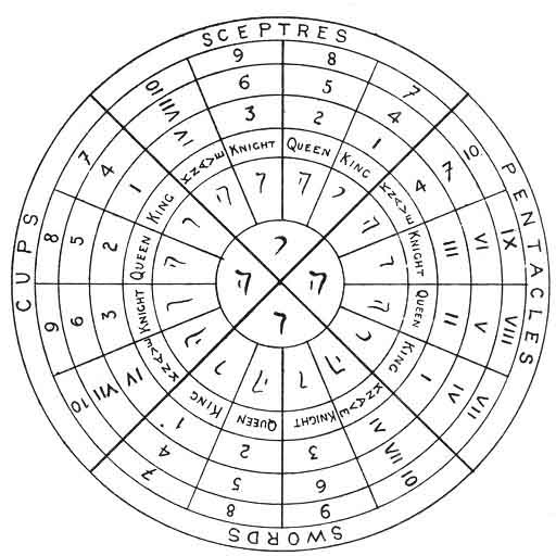 But we will leave these digressions and commence the application of the law Yod-he-vau-he to this portion of the Tarot.