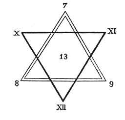 The two ternaries, positive and negative, will balance each other to give birth to a second septenary and to its term of transition 13. Thus--