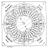 The elliptic space between these four figures and the centre correspond to the zodiac and its divisions.