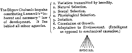 The somewhat complicated problem relating to the "Origin of Species," -- more especially of the varied groups of fossil or existing mammalian fauna -- will be rendered less obscure by the aid of a diagram. It will then be apparent to what extent the "Factors of Organic Evolution," relied upon by Western biologists,* are to be considered as