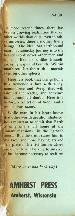While man in his heart knows that other worlds are also inhabited, he is reluctant to admit that Earth is only one small house of the "many mansions" in the Father's house. But the truth stares him in he face, and now, having arrived at a place in his civilization where only Truth will be able to survive, it has become necessary to reaffirm