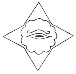 In the Solex-Mal, this is the symbol for the "All-Seeing Eye," the "Light of Creation," the four-pointed star stands for the Four Great Primary Forces of Creation, the flower of twelve petals represents the twelve planets.