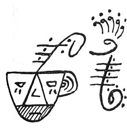 The following symbolic writing was received by our research group in northern Arizona in 1952. It is believed to be written in Solex-Mal. It has not been translated as yet. Some of it is Atlantean in character and the signatures of prominent personages are in evidence. It is evidently a complete message in itself.