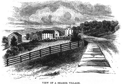 Mount Lebanon lies beautifully among the hills of Berkshire, two and a half miles from Lebanon Springs, and seven miles from Pittsfield. The settlement is admirably placed on the hillside to which it clings, securing it good drainage, abundant water, sunshine, and the easy command of water-power. Whoever selected the spot had an excellent eye for beauty and utility in a country site. The views are lovely, broad, and varied; the air is pure and bracing; and, in short, a company of people desiring to seclude themselves from the world could hardly have chosen a more delightful spot.